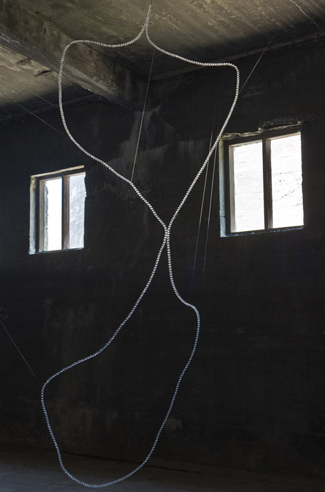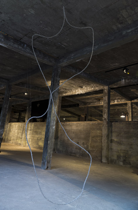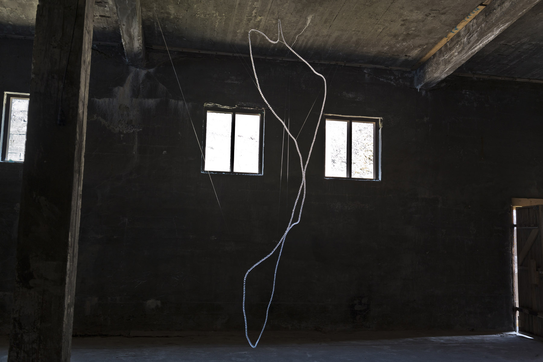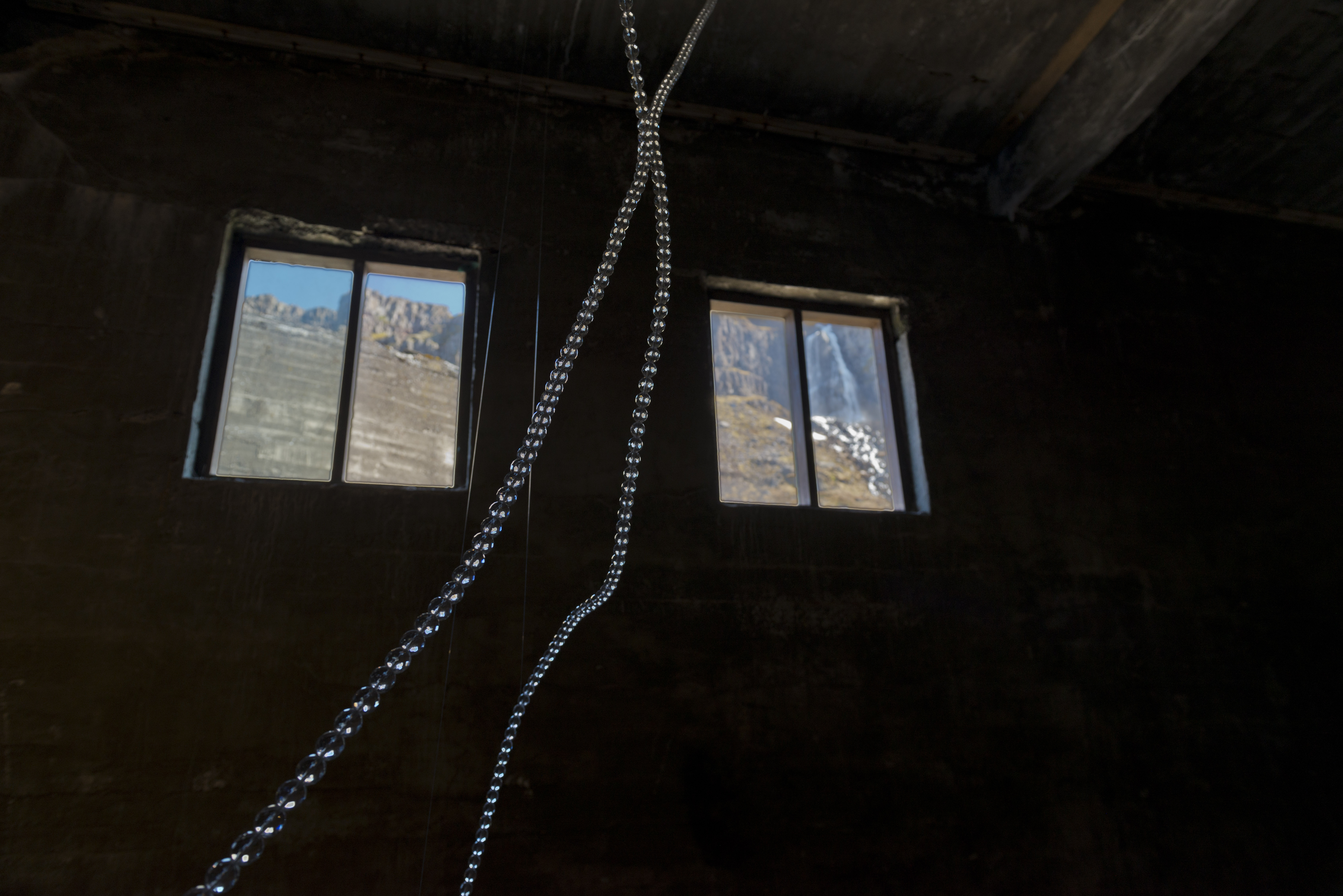 eTERNal fLIGHT depicts artic tern's migration route around the globe. Using glass pearls dispersing light into many small rainbows and reflections a three dimensional light drawing is created in the space inviting the viewer to feel the strength of the long journey towards the eternal light by all the senses. During the